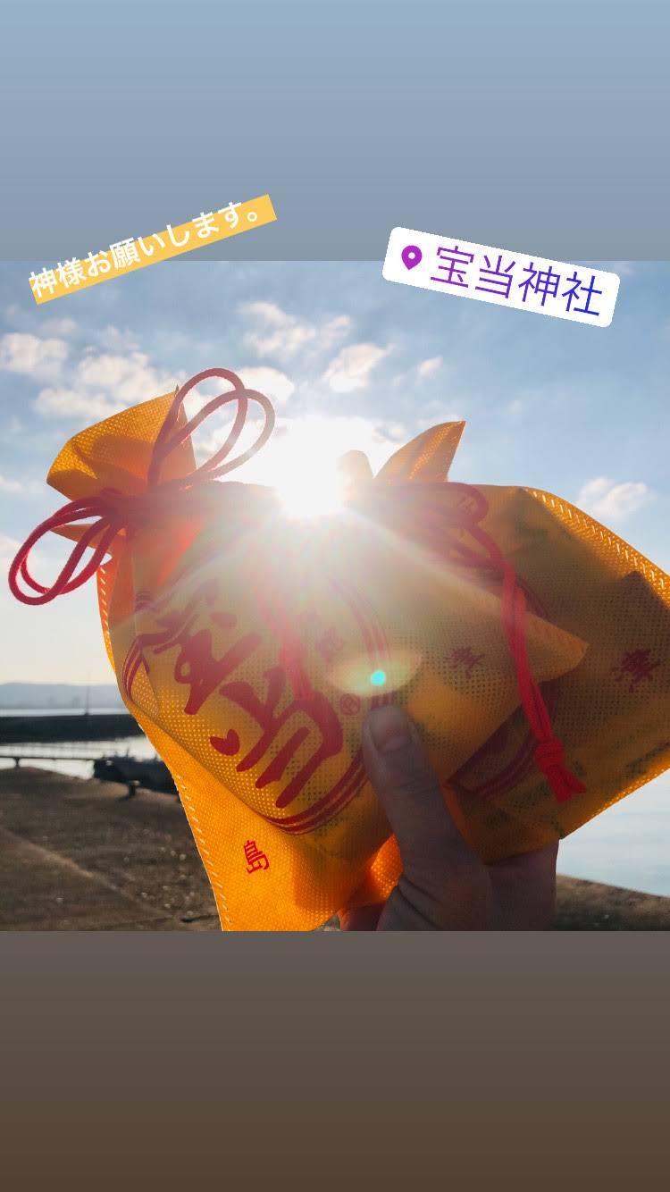 人気グッズの「宝当袋」もバッチリ買って、宝当神社へお参りもして、